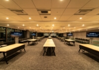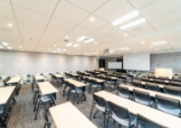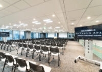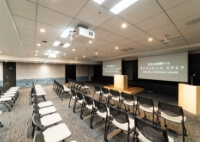 干渉の少ないマイク(赤外線ワイヤレスハンドマイク×5/赤外線ワイヤレスピンマイク×1/有線マイク×4)を採用しているため、混信などの心配もありません。他にもスクリーン、司会台、演台、ステージ、CDプレーヤー、ブルーレイプレーヤー、ホワイトボード、演者用のスポットライト等が無料付帯。小部屋の8A/ 8Bには55インチの液晶モニターが壁面固定で備わっているため、追加費用なしで会議が始められます。