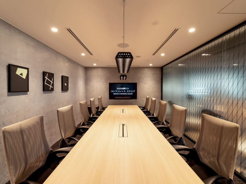 高級感のある空間が特徴的な部屋です。最大10名まで利用可能で、通常の会議はもちろん、役員会議やプレゼンテーションなど、フォーマルな内容にも適しています。
