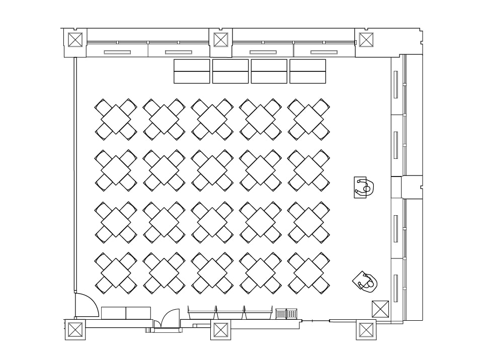 8A、8Cのスライディングウォールを開放することで同一会場での懇親会が可能です。調光式ダウンライトの照明演出と日比谷公園を一望できるロケーションが、より雰囲気を引き立てます。